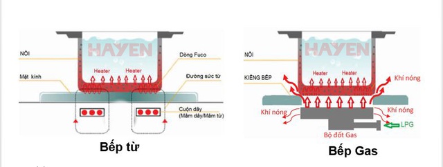 Các thiết bị bếp truyền thống tạo nhiệt bằng 1 bộ phận của bếp: họng đốt (với bếp gas) hoặc cuộn dây điện trở (với bếp điện và bếp hồng ngoại). Sau đó nhiệt lượng đốt nóng ra không khí xung quanh rồi mới truyền đến đáy nồi/chảo. Vì thế, nhiệt lượng thực tế được dùng để nấu thức ăn chỉ còn khoảng 40 – 50%.