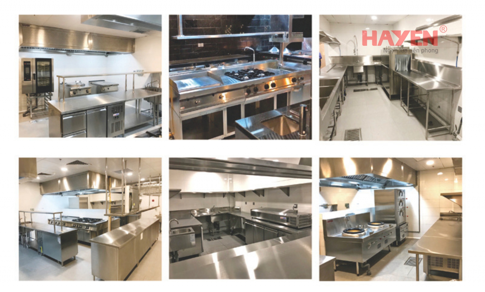 Không gian toàn bộ khu bếp công nghiệp của khách sạn rộng rãi, thông thoáng và sạch sẽ, được xây dựng theo nguyên lý thiết kế bếp một chiều giúp các khâu sơ chế và chế biến thực phẩm không đan lồng hay chồng chéo lên nhau đảm bảo sự tiện lợi cũng như tiết kiệm thời gian. Khu bếp chính được lắp đặt các thiết bị hiện đại đến từ các thương hiệu nổi tiếng thế giới như: Fagor, Electrolux,…và một số thương hiệu của Hà Yến như các dòng sản phẩm bếp từ - MasterInduc, làm lạnh - MasterCool.