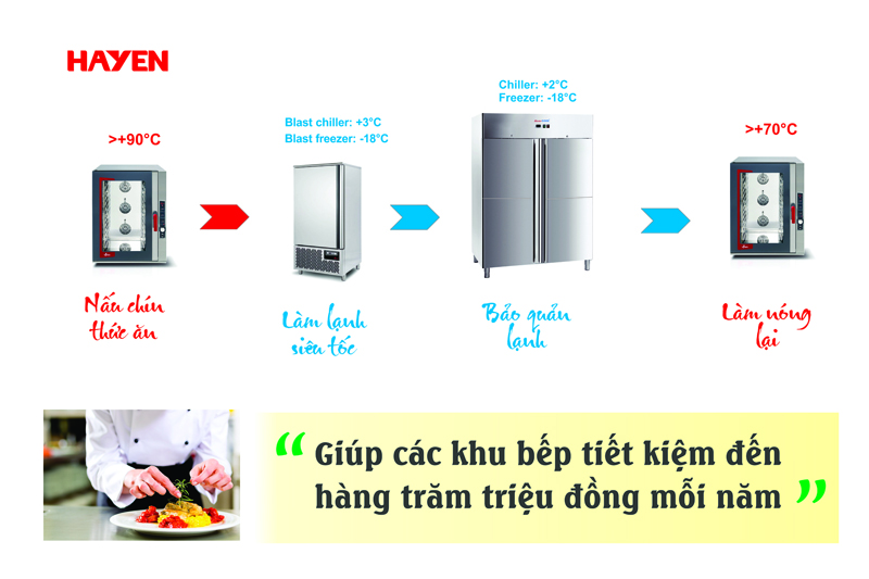 Đến với buổi hội thảo, khách mời được giới thiệu chi tiết các kiến thức quan trọng cần ghi nhớ trong quá trình áp dụng Cook&Chill như: Kiến thức về vùng nhiệt độ nguy hiểm, quy trình 10 bước thực hiện Cook&Chill. Bên cạnh đó, Hà Yến cũng phân tích các bài toán so sánh về 10 hiệu quả mà Cook&Chill mang lại so với phương pháp nấu truyền thống